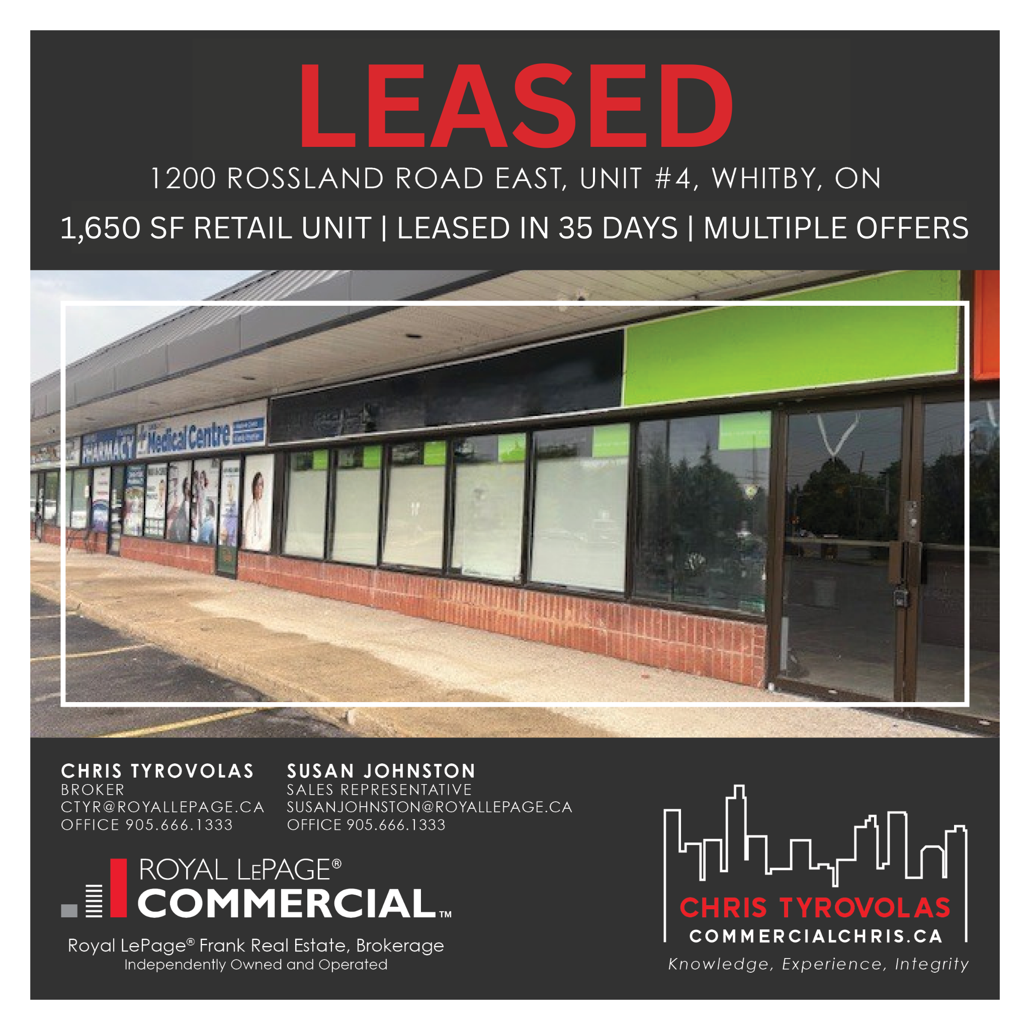 Chris & Susan are pleased to announce the successful lease of this prime corner unit in Whitby’s busy industrial district.